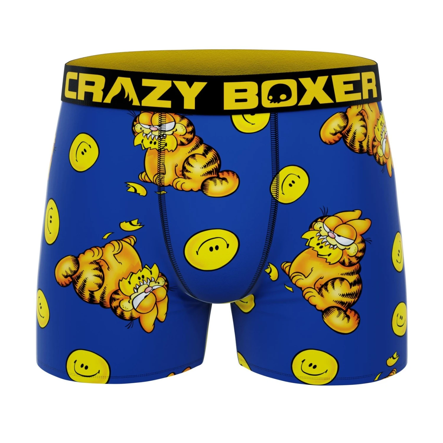 Garfield is perhaps going to stay mean to you but in a jovial way. Men’s Boxer Briefs- Mean Garfield is the product you are looking for. It sports a seated Garfield, sporting the golden expression of sourness. To contrast his mean nature, there are smileys, and oh boy! Garfield is crossed at them. This winsome sky blue color product has a matching elastic, comfortable elastic band for the cozy fit. The other product features Garfield in his rare innocent, inquisitive demeanor, and the white color goes along with it. The product is carefully designed to provide easement throughout the day, with no susceptibility to irritation or dissatisfaction. The composite material is durable, and the print lasts countless machine washes. Garfield is not going to change his mood so soon.