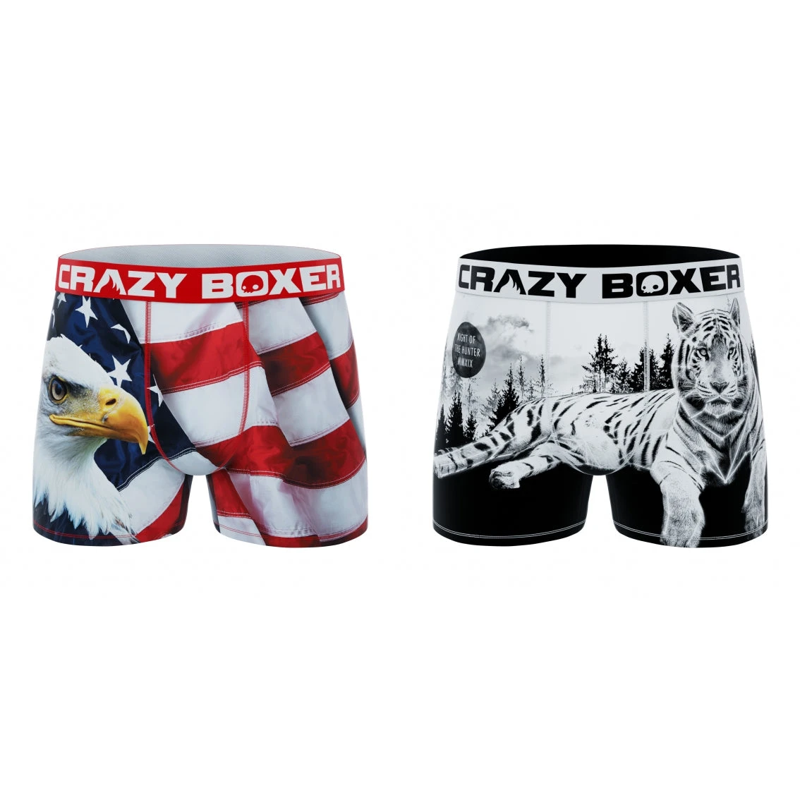 CRAZYBOXER Outdoor White Tiger Eagle Men’s Boxer Briefs (2 Pack)