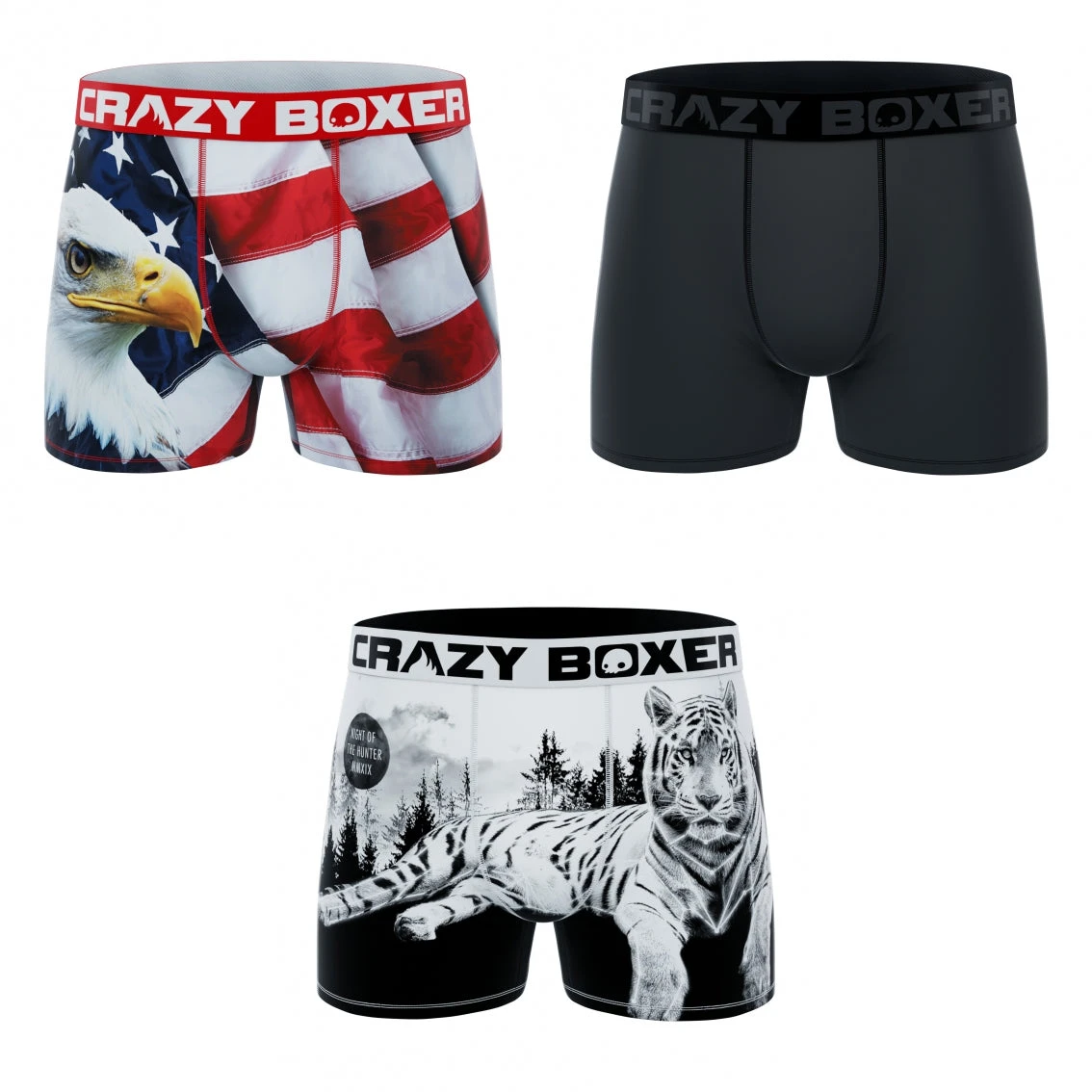 CRAZYBOXER USA White Tiger Men’s Boxer Briefs (3 Pack)