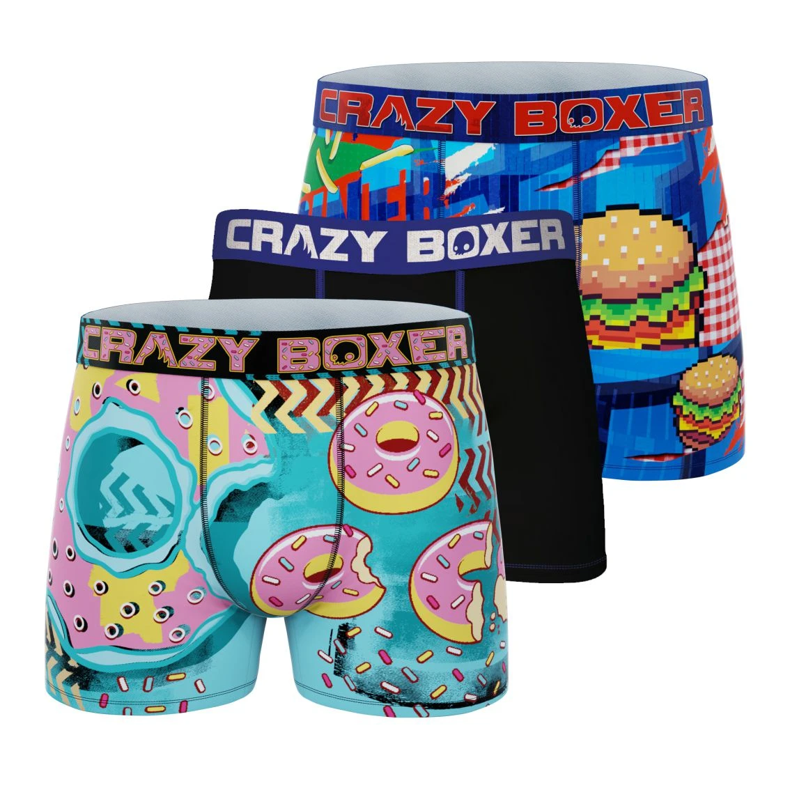 This 3-pack of boxers contains some of Crazy Boxers most delicious trunks. Our men’s underwear is extra comfortable to wear, thanks to the ultra breathability of our soft-touch, moisture-wicking fabric. You’re guaranteed to feel fresh and clean wearing Crazy Boxer briefs.